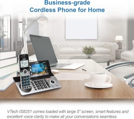 VTech IS8251-3 Business Grade 3-Handset Expandable Cordless Phone for Home Office, 5″ Color Display, Programmable Short Cut Keys, Smart Call Blocking, Answering System,Bluetooth Connect to Cell | ⭐ Art Stationers Best Choice