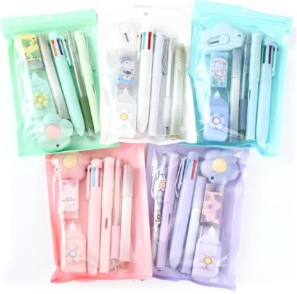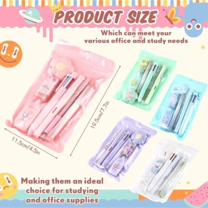 5 Sets 7 Pcs Kawaii Stationery Set Cute Stationery Mini Office Supply Kit Cute School Supplies Including Ballpoint Pens Pencil Sharpener Highlighter Correction Tape Ruler Utility Knife | ⭐ Art Stationers Best Choice