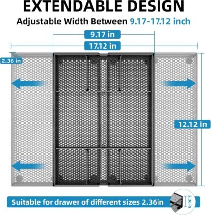 Marbrasse Expandable Desk Drawer Organizer, Mesh Drawer Organizer Tray with 10 Adjustable Compartments, Desk Organizers and Accessories, 5 Dividers Drawer for Office Supplies, Makeup & Vanity (Black) | ⭐ Art Stationers Best Choice