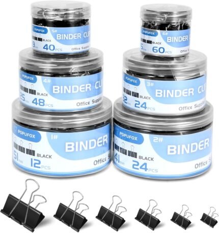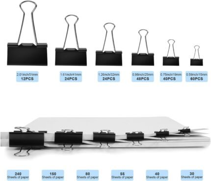 Binder Clips Assorted Sizes Including Extra Large Medium Small Mini and Micro, Office Supplies File Clamps Paper Clips, 6 Sizes in 6 Boxes, 208 PCS Metal Black Clamps for School | ⭐ Art Stationers Best Choice