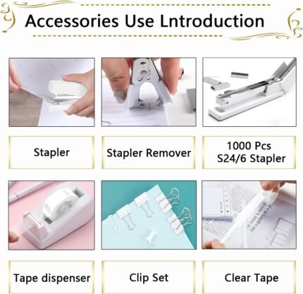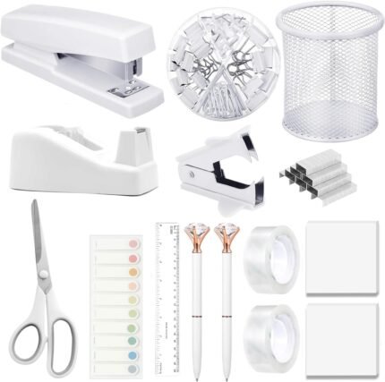 Office Supplies,Desk Accessories, Stapler and Tape Dispenser Set for Women with Stapler, Tape Dispenser, Staple Remover, Staples, Clips, Scissor and Tabs,Gift for Students, Coworkers | ā Art Stationers Best Choice
