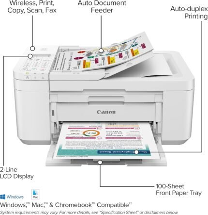 Canon PIXMA TR4720 Wireless Color All-in-One Inkjet Printer, White – Print Copy Scan Fax – 4800 x 1200 dpi, Auto 2-Side Printing, 20-Sheet ADF, Tillsiy Printer_Cable | ā Art Stationers Best Choice