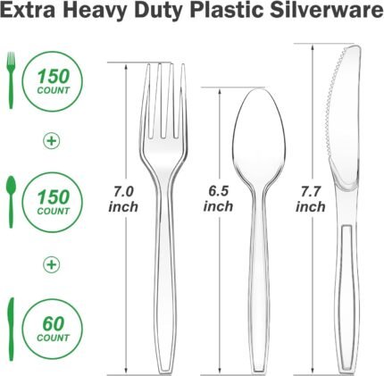 360 Count Extra Heavy Duty Clear Plastic Silverware, 150 Forks, 150 Spoons, 60 Knives, BPA-Free, Heat Resistant, Disposable Plastic Utensils Set, Plastic Cutlery Set, Plasticware Bulk | ā Art Stationers Best Choice
