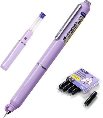 WRITECH Fountain Pen Fine Nib: Retractable Black Ink Pens Set Includes 5 Ink Cartridges Smooth Writing for Calligraphy Sketching Journaling Gift (Purple) | ⭐ Art Stationers Best Choice