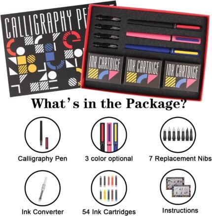 GC QUILL Calligraphy Pens Set 64pcs – Calligraphy Fountain Pen Set with 3 Fountain Pens, 7 Varied Nibs, 54 Ink Cartridges(10 Colors) – Writing, Drawing and Calligraphy Practice for beginner GC-F354 | ⭐ Art Stationers Best Choice