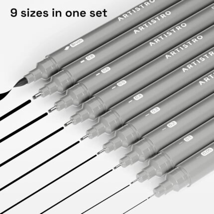 ARTISTRO Set of 9 Fineliner Pens – Black Micro Pens with Ultra Fine Tips for Drawing, Sketching, Writing, Journaling and Technical Illustration – Waterproof Archival Ink | ⭐ Art Stationers Best Choice