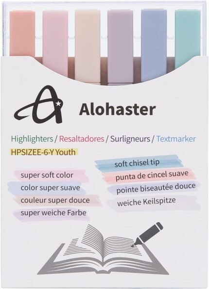 HPSIZEE Aesthetic Cute Highlighters Mild Assorted Colors With Soft Chisel Tip, No Bleed Dry Fast Easy to Hold, for Journal Bible Planner Notes School Office Supplies, 6 Pack – Youth | ⭐ Art Stationers Best Choice
