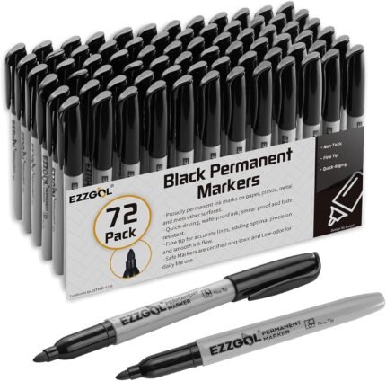 Permanent Markers Bulk, 72 Pack Black Permanent Marker Set, Fine Tip, Waterproof Markers, Premium Smear Proof Pens, Waterproof, Quick Drying, Office Supplies for School, Office, Home | ⭐ Art Stationers Best Choice