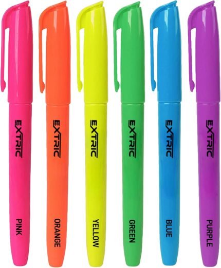 EXTRIC 6 Pack Highlighters, Fluorescent Assorted Colors, Quick Dry, Pen Style Chisel Tip highlighter marker, Smudge Free, Pocket Size | ⭐ Art Stationers Best Choice
