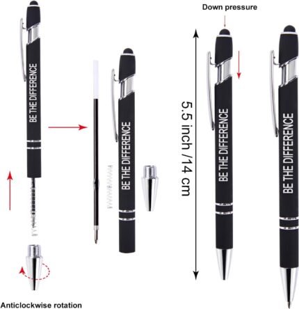 Funny Pens – 12 Pack Fine Point Smooth Writing Pens with Inspirational Tips, Black Ink, Touch Stylus Screens, Motivational Gift for Office & Desk Accessories | ⭐ Art Stationers Best Choice