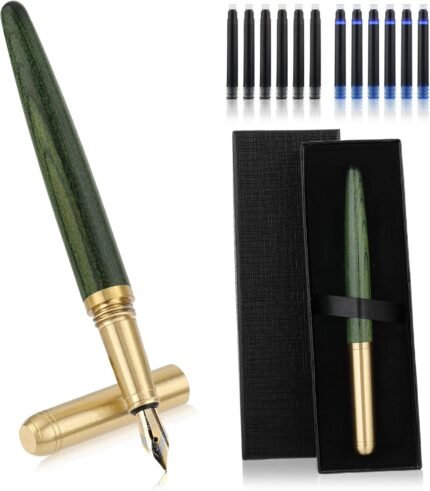 Luxury Wooden Fountain Pens Set, Fine Nib Wood Fountain Pen Vintage Wooden Pen with 12 2.6 mm Ink Cartridges and Gift Box for Journaling Business Office Supplies(D) | ⭐ Art Stationers Best Choice