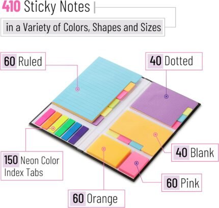 Mr. Pen- Sticky Notes Set, 410 Pack, School Supplies, Office Supplies, Planner Sticky Note Dividers Tabs, Book Notes, Bible Sticky Notes, Back to School Supplies | ⭐ Art Stationers Best Choice