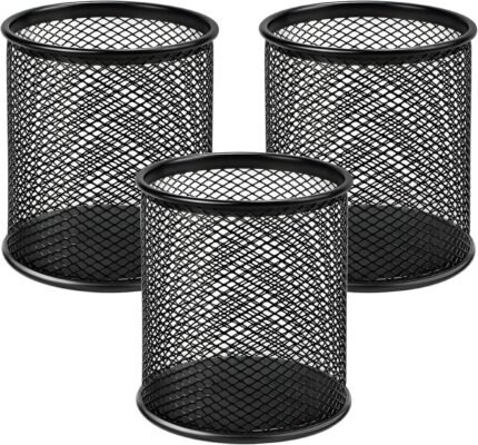 MaxGear Pen Holder, 3 Pack Pencil Holder for Desk, Premium Mesh Metal Desk Organizer with Non-Slip EVA Pad, Desk Accessories & Workspace Organizers for Home, School & Office, Black, 3.7’’ Tall | ⭐ Art Stationers Best Choice