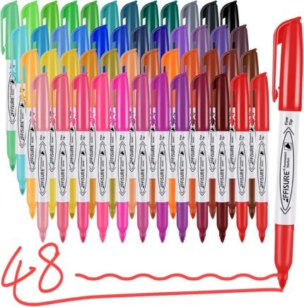 48 Colors Permanent Markers, Assorted Colors Vibrant Markers, Fine Point,Works on Wood, Plastic, Metal, and More, for Adults, Artist, Teacher, Kids, 48 Pack | ⭐ Art Stationers Best Choice