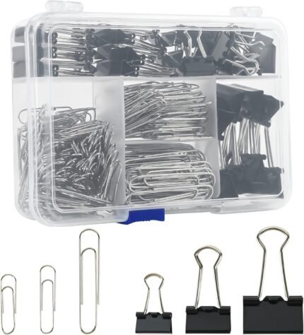 Assorted Size Binder Clips & Jumbo Paper Clips Set – 340pcs Black, Large for Office & School Supplies, in Container with Compartments | ā Art Stationers Best Choice