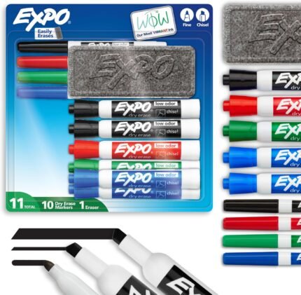 EXPO Dry Erase Markers Set Mixed Tip White Board Markers with White Board Eraser Assorted Colors 11 Count | ā Art Stationers Best Choice