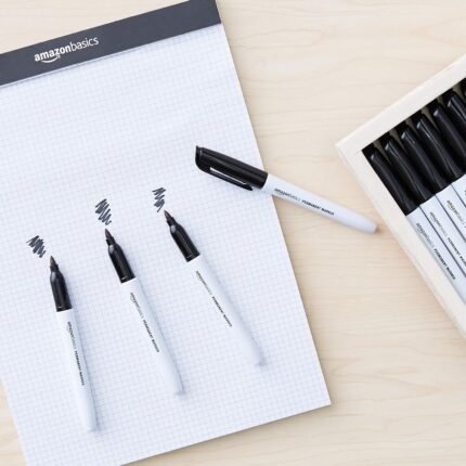 Amazon Basics Fine Tip Point Permanent Markers for Office, School, and Home Use, Black, 24 Pack | ā Art Stationers Best Choice