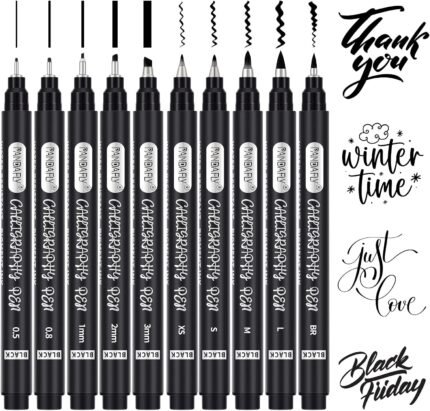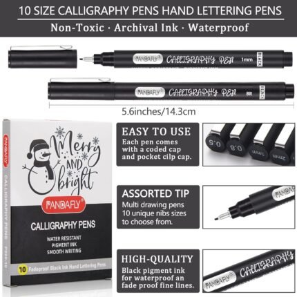 PANDAFLY Calligraphy Pen, 10 Size Calligraphy Pens for Writing, Brush Pens Calligraphy Set for Beginners, Hand Lettering Pen for Art Drawing, Sketching, Scrapbooking | ā Art Stationers Best Choice