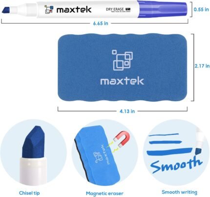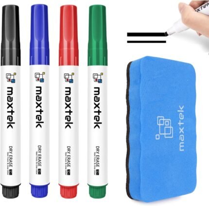 maxtek Low Odor Dry Erase Markers Chisel Tip, Whiteboard Markers Set Assorted Colors 4 Count with 1 Magnetic Eraser | ā Art Stationers Best Choice