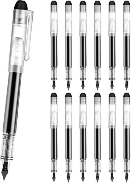 Disposable Fountain Pens for Writing – Fine Point Nib, Pack of 12, Black | ā Art Stationers Best Choice