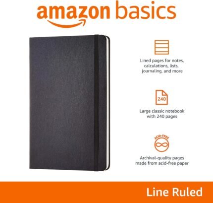 Amazon Basics Classic Lined Notebook, 240 Pages Hardcover, 5 x 8.25-Inch, Black | ā Art Stationers Best Choice