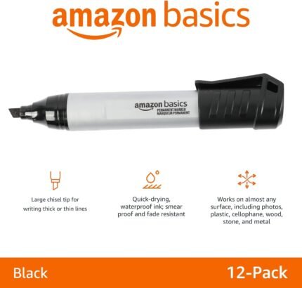 Amazon Basics Large Chisel Tip Permanent Markers, Black, 12-Pack | ā Art Stationers Best Choice