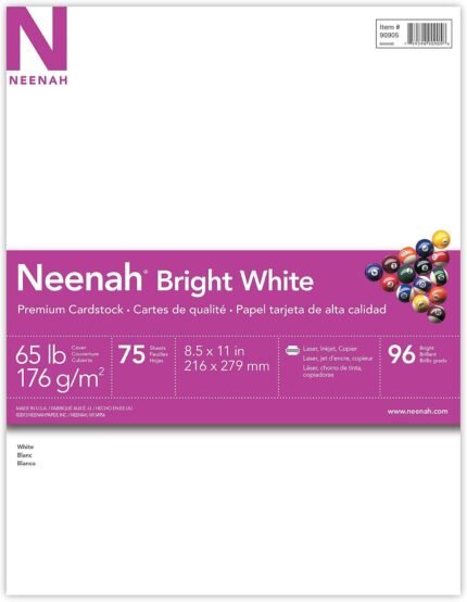 Astrobrights/Neenah Bright White Cardstock, 8.5″ x 11″, 65 lb/176 gsm, White, 75 Sheets (90905-02) – Packaging May Vary | ⭐ Art Stationers Best Choice