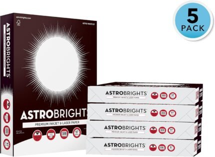 AstrobrightsĀ® Printer & Copy Paper, 8.5″ x 11″, 28lb/105gsm, 97 Brightness, White, 5 reams of 300 sheets per ream, 1,500 sheets per carton (91738-01) | ⭐ Art Stationers Best Choice