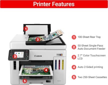 Canon Megatank GX7120 Wireless All-in-One Printer, Print, Copy, Scan and Fax with 2.7″ LCD Touch Screen and Auto Document Feeder, White | ā Art Stationers Best Choice