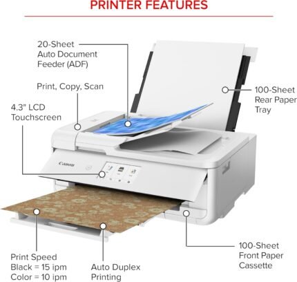 Canon PIXMA TS9521C All-in-One Wireless Crafting Photo Inkjet Printer, White – Print Scan Copy – 4.3″ Touchscreen, 15 ipm, 4800 x 1200 dpi, Auto 2-Sided Printing, Bluetooth, SD Card Slot | ā Art Stationers Best Choice