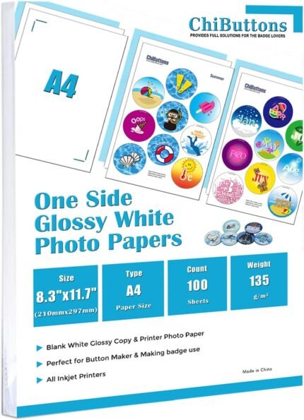 ChiButtons One Side Glossy Photo Paper A4 (135g) (Specially for button maker use) | ⭐ Art Stationers Best Choice
