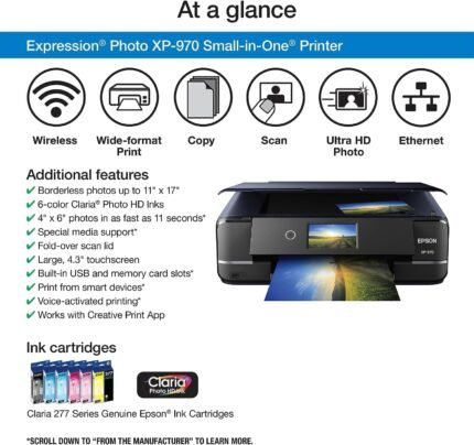 Epson Expression Photo XP-8800 Wireless Printer with 6-Color Claria Ink System, Borderless Printing up to 8.5″ x 11″, Fast 4″ x 6″ Photo Printing, 4.3″ Color Touchscreen, Built-in Scanner and Copier | ā Art Stationers Best Choice