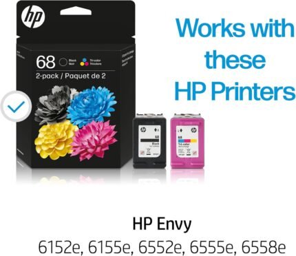 HP 68 Black/Tri-Color Ink Cartridges (2-Pack) | Works Envy 6100e, 6500e Series | Eligible for Instant Ink | 6L6S2TN | ā Art Stationers Best Choice