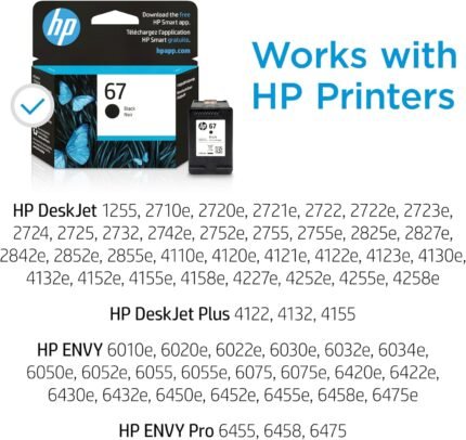 HP 67 Black Ink Cartridge for HP Printers, Works with DeskJet 1255, 2700, 4100 and ENVY 6000, 6400 Series, Eligible for Instant Ink, 3YM56AN | ā Art Stationers Best Choice