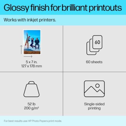 HP Everyday Photo Paper – Designed for HP Inkjet Printers, Glossy, 5×7 in, 60 sheets (CH097A) | ā Art Stationers Best Choice