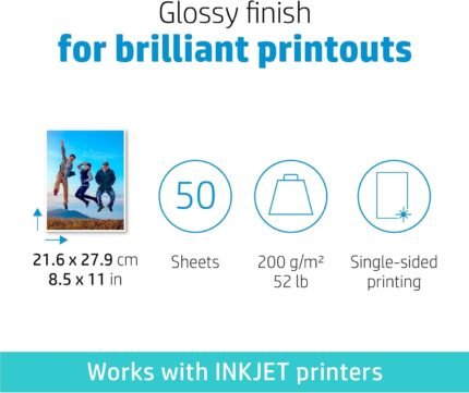 HP Everyday Photo Paper, Glossy, 8.5×11 in, 50 sheets (Q8723A) | ā Art Stationers Best Choice