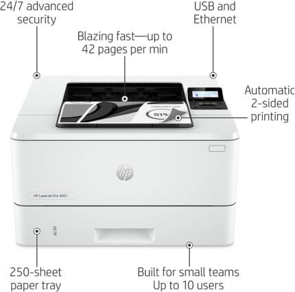HP LaserJet Pro 4001dn Black & White Printer, Print, Fast speeds, Easy setup, Mobile printing, Advanced security, Best-for-small teams, Ethernet/USB only | ⭐ Art Stationers Best Choice