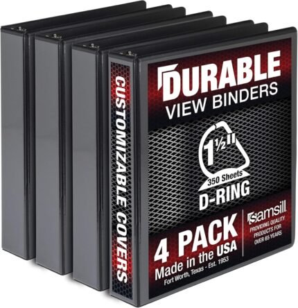 Samsill Durable 1.5 inch 3 Ring Binder, Made in USA, D Ring Binder, FSC 100% Recycled Chipboard, Black, 4 Pack | ā Art Stationers Best Choice