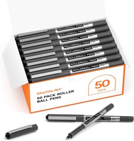 Shuttle Art RollerBall Pens, 50 Pack Black Fine Point Roller Ball Pens, 0.5mm Liquid Ink Pens for Writing Journaling Taking Notes School Office | ā Art Stationers Best Choice