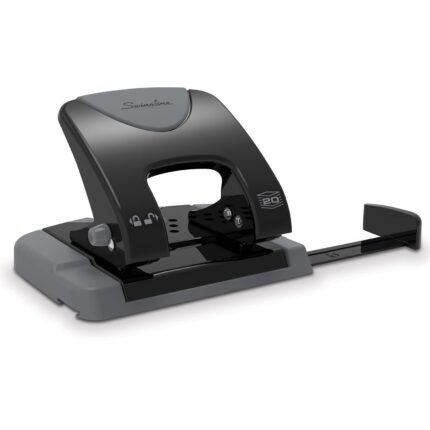 Swingline 2 Hole Punch, 20 Sheet Capacity Hole Puncher, Paper Punch, SmartTouch Low Effort Comfort Handle, Alignment Guide, Black & Gray (74135) | ā Art Stationers Best Choice