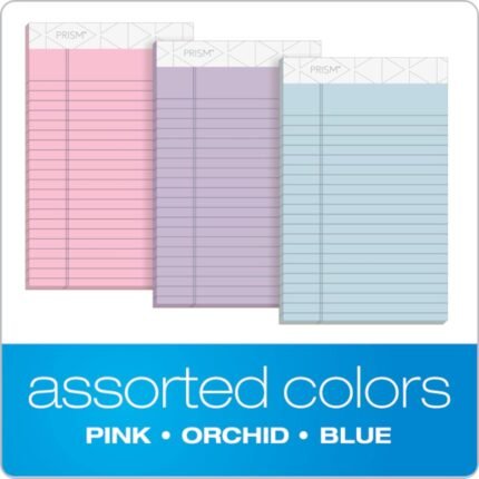 TOPS 5 x 8 Legal Pads, 6 Pack, Prism Brand, 2 Pink/2 Blue/2 Purple, Narrow Ruled, 50 Sheets Per Writing Pad, Made in USA (63016) | ⭐ Art Stationers Best Choice