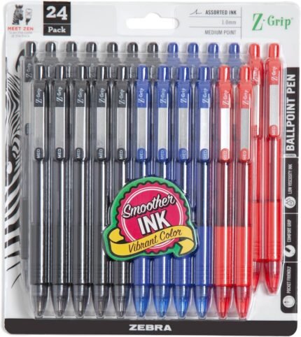 Zebra Pen Z-Grip Retractable Ballpoint Pen, 1.0mm Medium Point, Assorted Business Colors, School Supplies, Teacher Supplies, and Office Supplies, 24-Pack (12224) | ā Art Stationers Best Choice