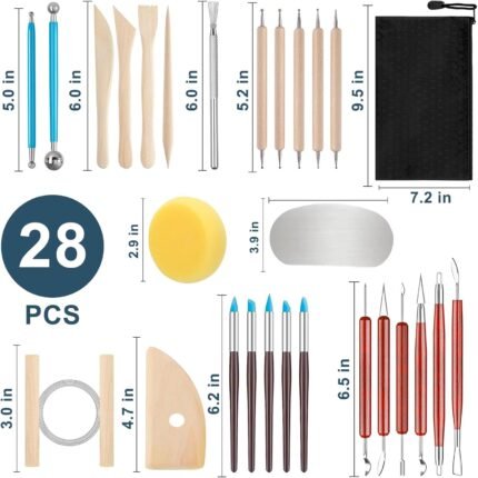 JRKOO Clay Tools Kit,28 PCS Pottery Tools,Polymer Clay Tools,Air Dry Clay Tools Set for Kids, Adults,Pottery Craft,Drawing,Dotting,Carving,Molding,Baking,Modeling,Shaping | ā Art Stationers Best Choice