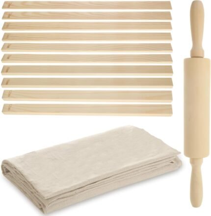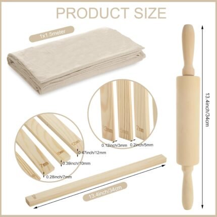 LOYORTY 12 PCS Pottery Tools Include 10PCS 5 Size Pottery Teaching Rolling Mud Stick Guide 1 Wood Rolling Pin and 1 Linen Tablecloth Clay Tool Mudboard Tools for Ceramic Clay Making | ā Art Stationers Best Choice