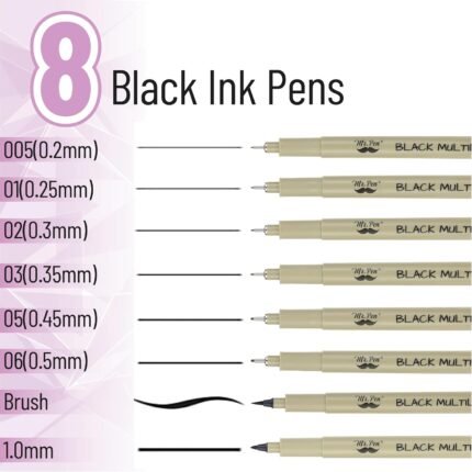 Mr. Pen- Drawing Pens for Artists, 8 Pack Black Multiliner/Fineliner Micro Anime / Sketch Pens, Line Art /Inking Pens, Fine Point Bible Journaling Pens | ā Art Stationers Best Choice