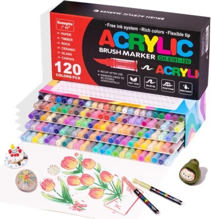 120 Color Paint Markers, Soft Brush Tip Acrylic Paint Pens, Quick-Drying Waterproof Markers for Canvas, Rock, Wood, Stone, Glass, Ceramic, Fabric Painting | ā Art Stationers Best Choice