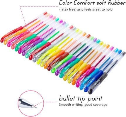 Aen Art Glitter Gel Pens Colored Fine Tip Markers with 40% More Ink for Adult Coloring Books, Drawing and Doodling (24 Colors) | ā Art Stationers Best Choice