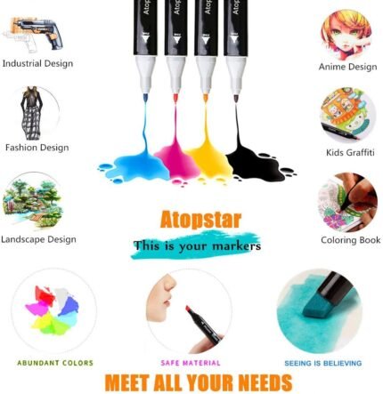Alcohol Markers Set, 80 Colors Dual Tip Art Markers with Broad and Fine Tips for Adult Coloring Books, Drawing, Illustration, Sketching, No Bleed Ink Supplies | ā Art Stationers Best Choice