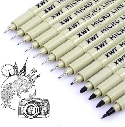 12+1 Fineliner Drawing Art Pens, Black Waterproof Pigment Ink Set for Artists, Sketching, Manga, Watercolor, Calligraphy, and Detail Outlining Archival Quality Inking Markers | ā Art Stationers Best Choice