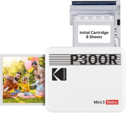 KODAK Mini 3 Retro 4PASS Portable Photo Printer (3×3 inches) + 8 Sheets, White | ā Art Stationers Best Choice
